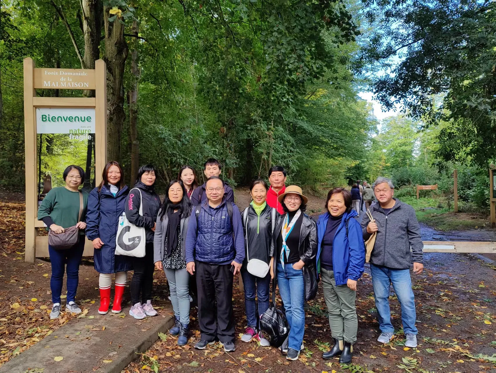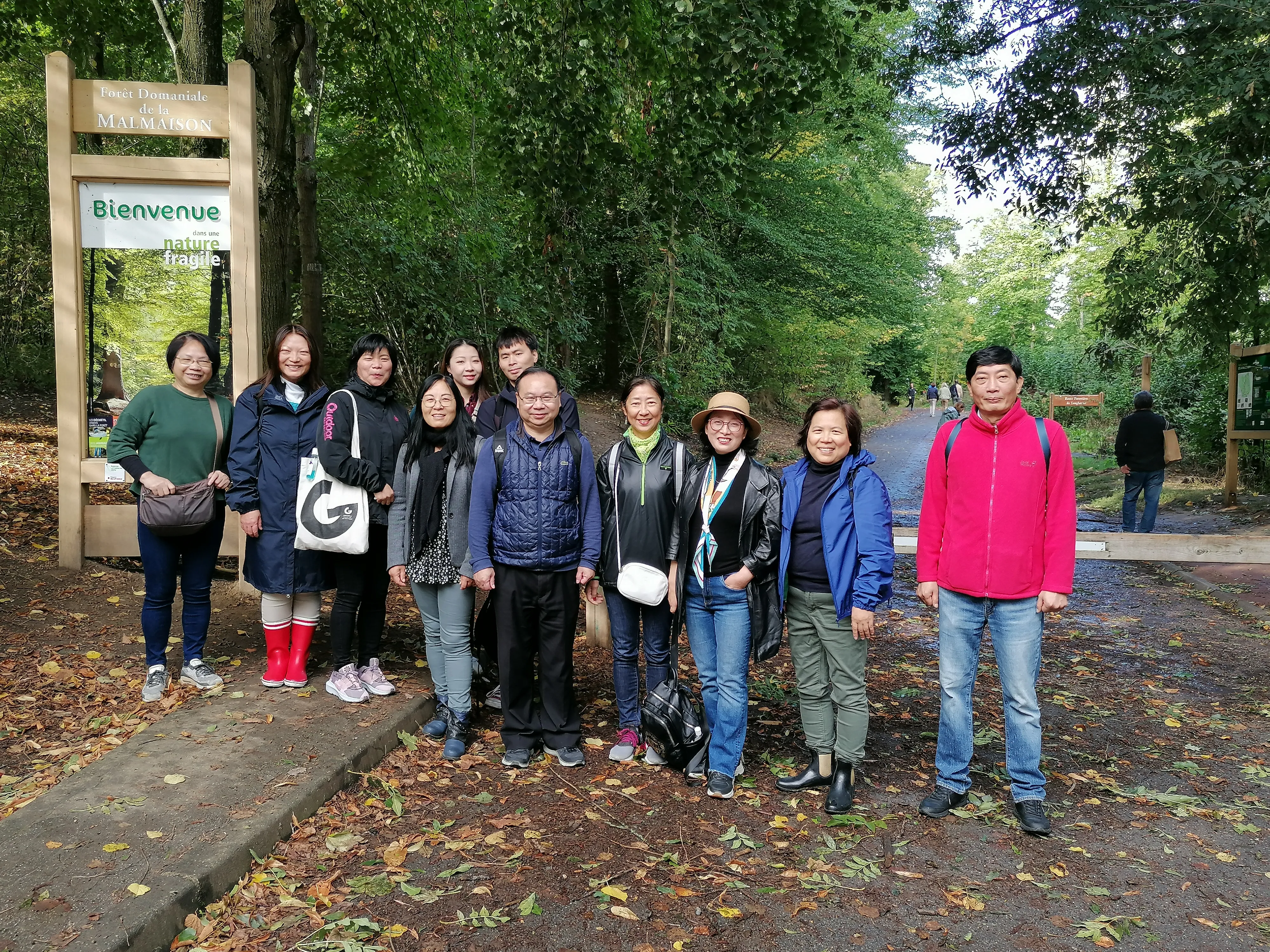 校友们按集合时间九点半全部准时达到Rueil Malmaison RER车站。接着,大家转乘467公共汽车前往目的地-Malmaison森林。一路上,大家高兴地观赏了沿途建筑风格别致、环境优美的别墅村庄。