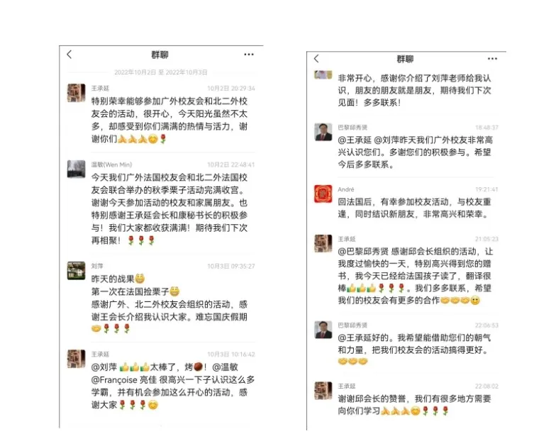 此次秋游活动得以顺利举行,首先要感谢各位校友、朋友的积极参与;感谢西外王承延会长、孔子学院刘萍院长的热情参加;感谢广外法国校友会秘书长温敏会长的精心组织;感谢康杨秘书长携全家积极参与。我们期待下次活动见!