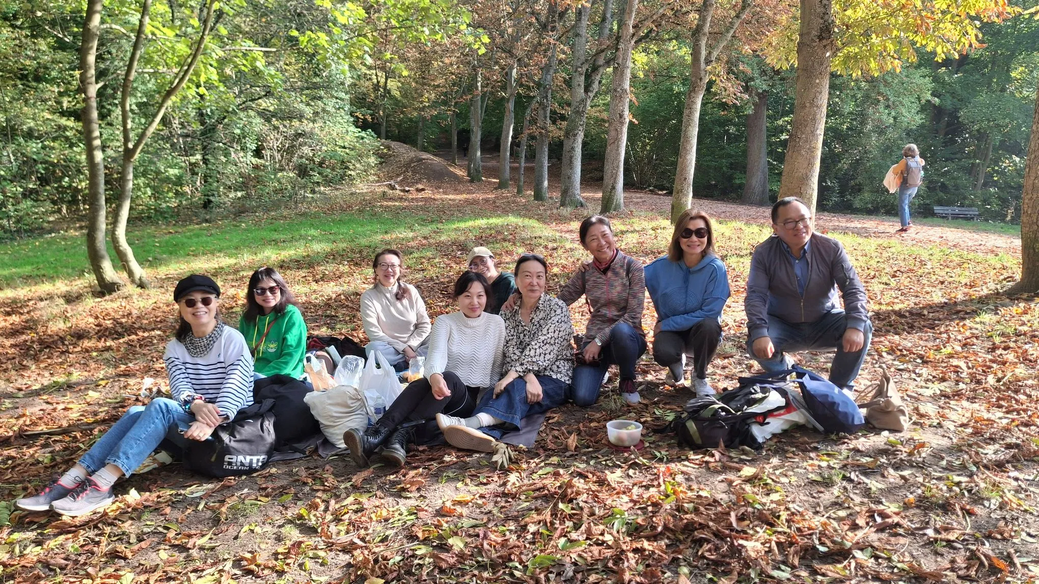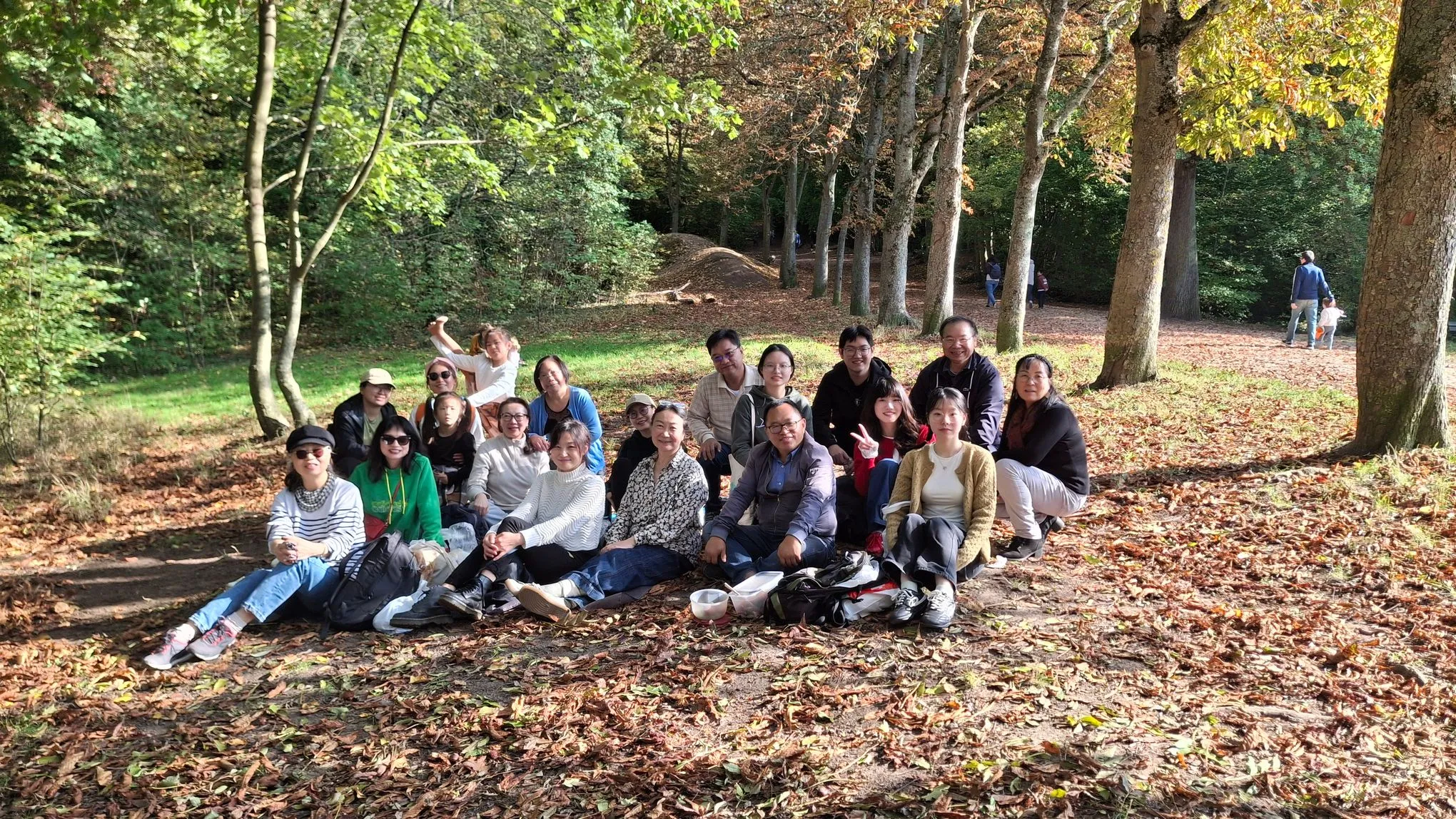 巴黎,2025年10月12日——金秋十月,天气格外晴朗,广东外语外贸大学(广外)、北京第二外国语学院(北二外)和西安外国语大学(西外)法国校友会联合组织的秋季郊游活动在巴黎西郊的Malmaison森林圆满举行。近三十位校友及家属相聚于此,徒步赏秋、采摘栗子,共叙校友情谊。